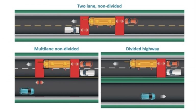 Question: I read your last article about school buses and flashing lights. Can you do a reminder on passing a school bus?